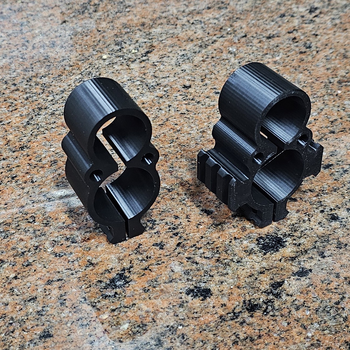 Zwei Versionen: Standard mit unterer Schiene oder mit zusätzlicher seitlicher Schiene für mehr Zubehör.