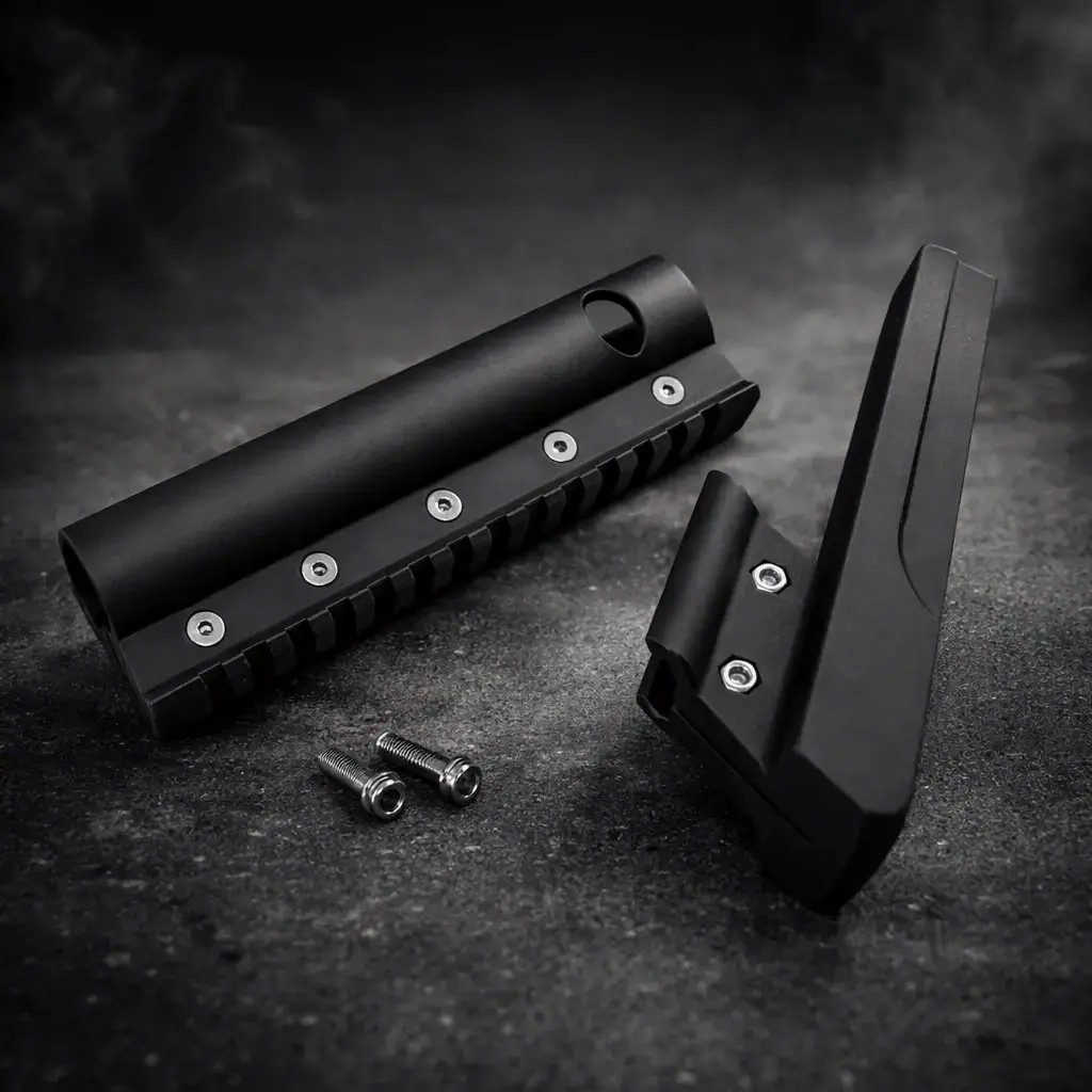 O suporte é montado com 2x parafusos M4 (20mm). Como resultado, fornece uma posição de mão estável.