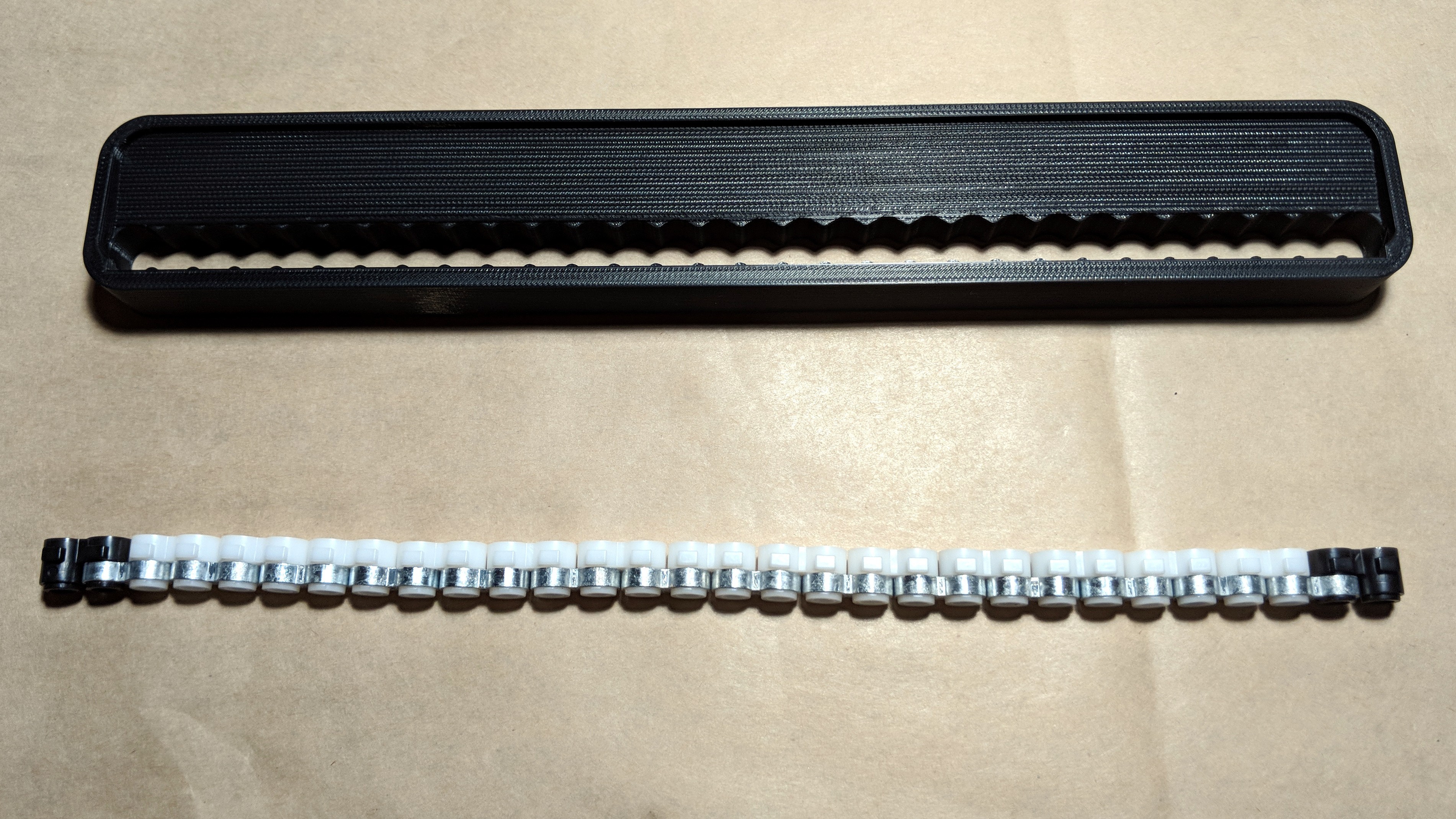 Detta Àr ett lastverktyg för (luftgevÀr) SIG MPX/MCX RPM .177 magasinpelletsband. Bandet Àr ett snyggt matningssystem men att ladda det Àr en besvÀrlig process, sÄ det hÀr verktyget gör det lÀttare.